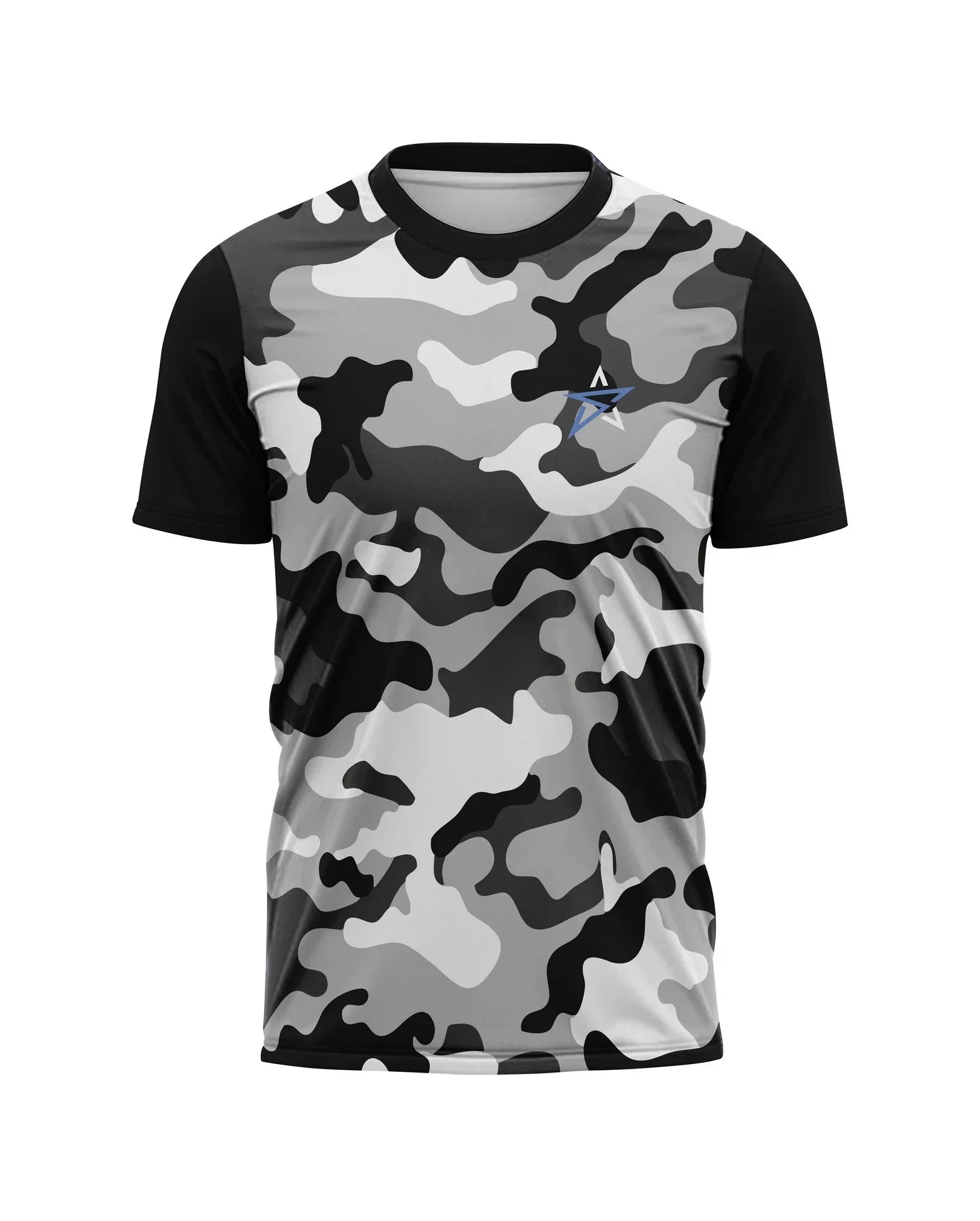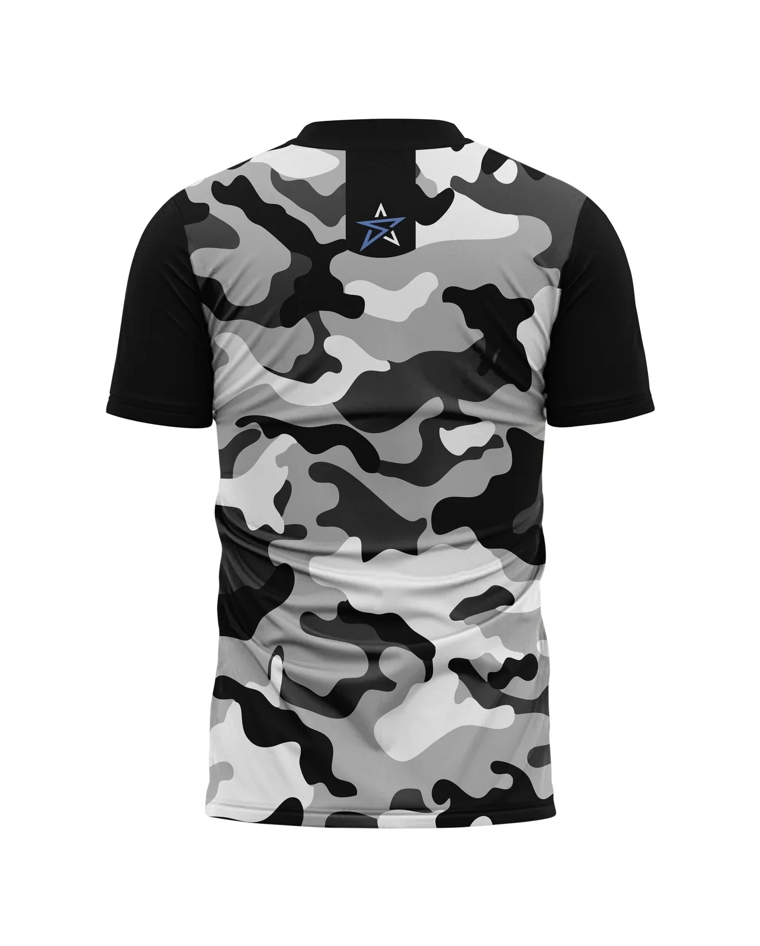 Product Description: Elevate your style with our Grey Camouflage Print Men's T-Shirt. This fashion-forward top features a sleek black base adorned with a subtle grey camouflage pattern, offering a contemporary twist on a classic look. Crafted from micro mash premium fabric, it delivers both comfort and durability, making it ideal for everyday wear. The shirt is completed with a small star logo, adding a touch of unique flair. Available in sizes S, M, L, XL, and XXL, and priced at 1250 Rs. each, this printed shirt is a versatile addition to any wardrobe. Embrace the fusion of style and comfort with a tee that stands out from the crowd.
