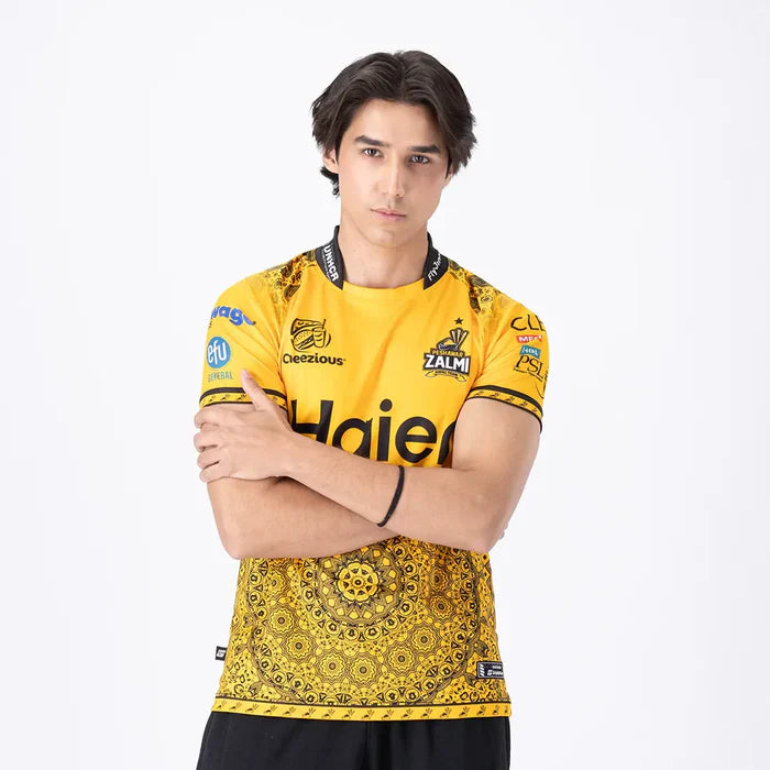 Crafted for athletes who demand both performance and flair, the Peshawar Zalmi Home Jersey combines cutting-edge fabric technology with a bold, modern design. Perfect for training, casual wear, or representing your brand, this tee is engineered to keep up with your active lifestyle.